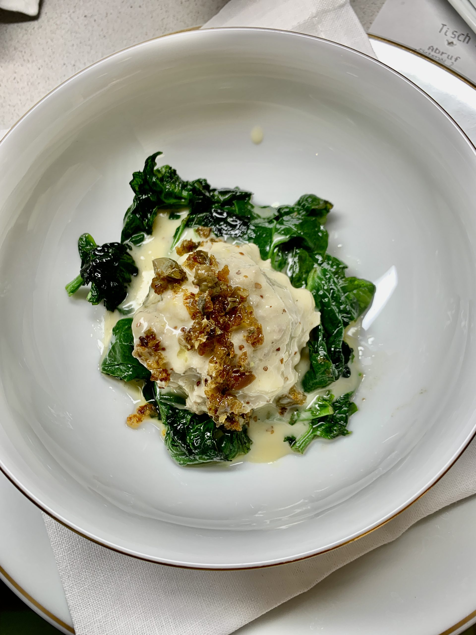 - Königsberger Klops, klassisch mit Kapernsauce und Winterspinat