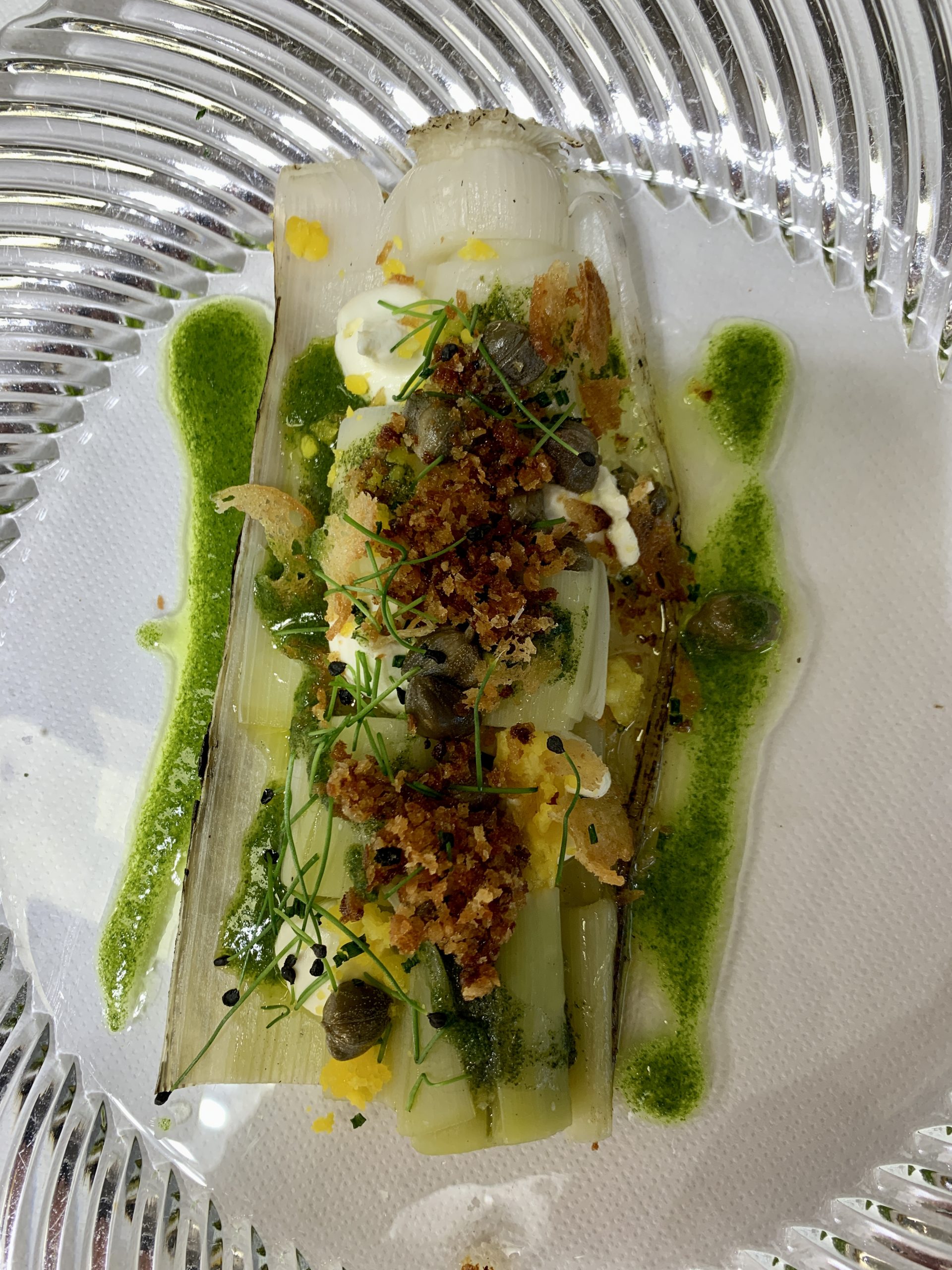 - Gratinierter Stangenlauch, Fromage Blanc und Kräutervinaigrette