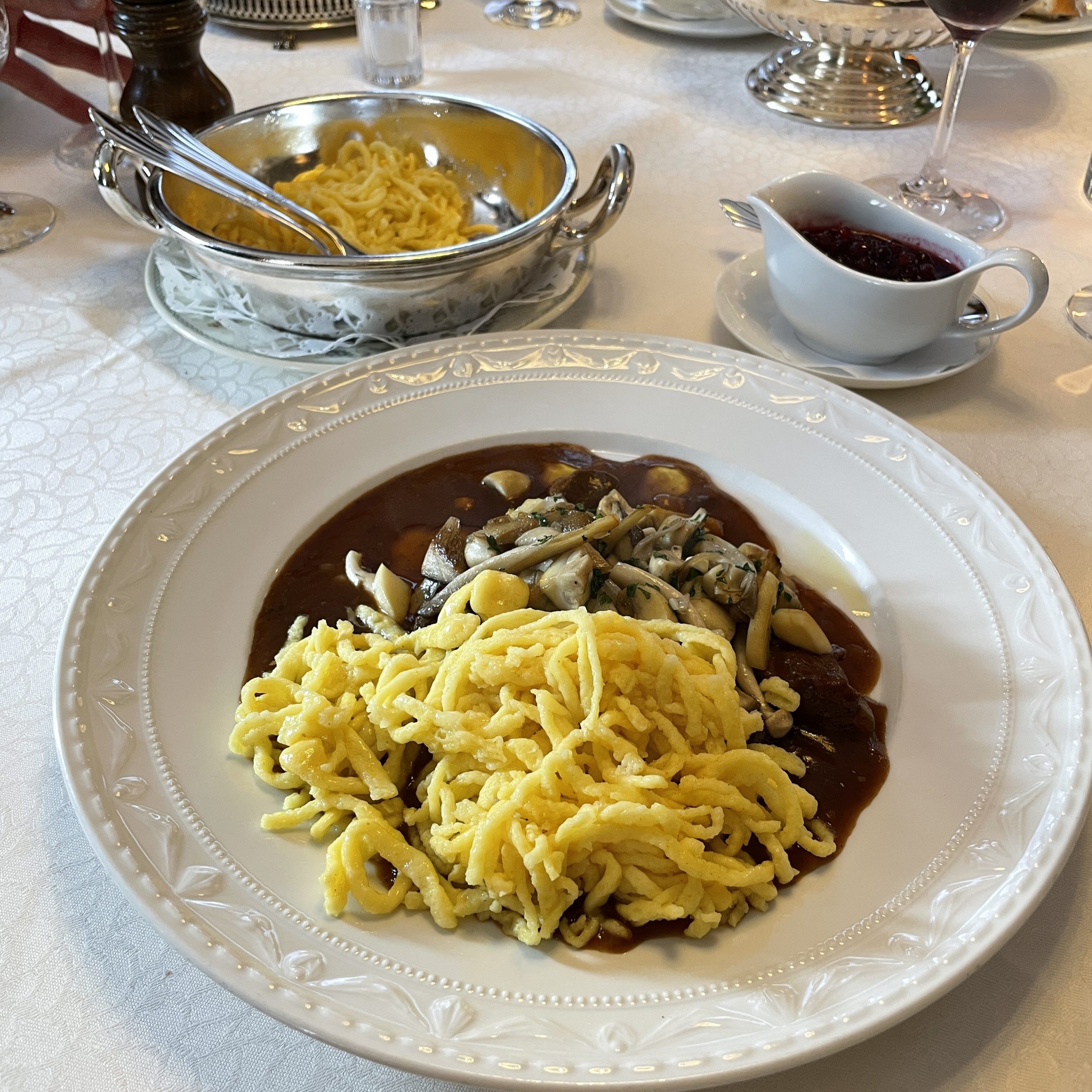 - Spätzle frisch aus der Presse. Er kocht, Sie bedient. Der Koch, einer der letzten klassischen Meister. Aussterbende Spitzenklasse. Zuerst kommt für mich dieser Koch, dann erst die Dreisternekategorie.