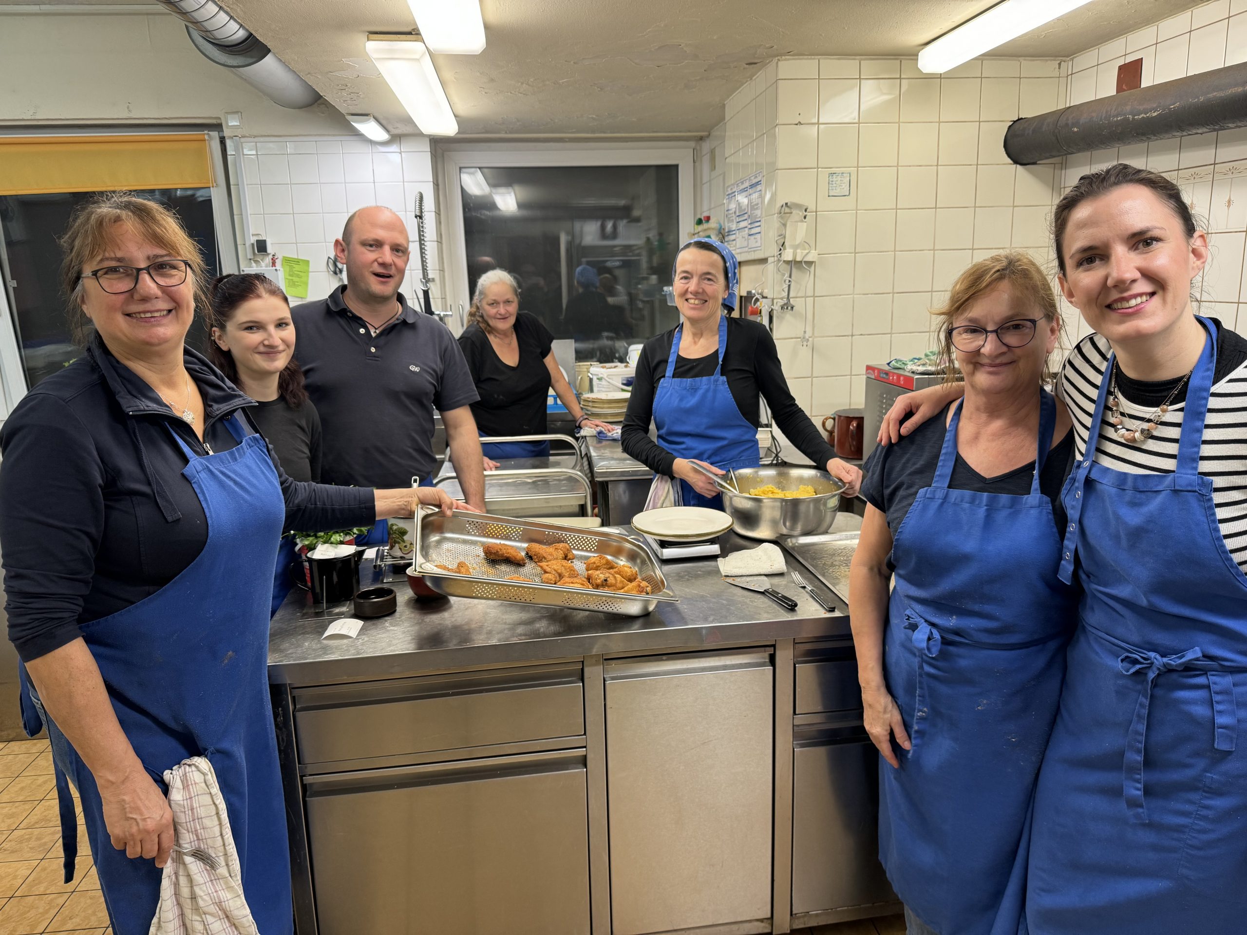 Nach dieser Ortsbesichtigung geht es weiter in den Stall, In diesem Gasthaus wird von A-Z so gut wie alles selbst hergestellt. Jede Menge schottischer Hochlandrinder stehen im Stroh und kommen auf mich zu. Sie sind alle sauber, auch der Schwanz gewaschenen, der Stall hell und trocken, die Luft frisch. “Im Somm’r habet mer se im Freia!” Ein Riesenziege will gerade ihr Gatter überklettern um mich näher kennenzulernen. Man bringt mich in Sicherheit und ich werde zur Küche geleitet. Der Anblick, der kochenden Göttinnen beglückt mich kolossal. Kein Wunder, dass es an diesem Wallfahrtsort so gut schmeckt. Ich bin sicher auch das Opfer von Romantik und Vorurteilen, aber ich stehe dazu: kochende Frauen sind in der Regel gründlicher und ausdauernder als Männer. Von wegen schwaches Geschlecht. So ein Blödsinn, sowas kann nur von Testosteron-Idioten verbreitet werden.