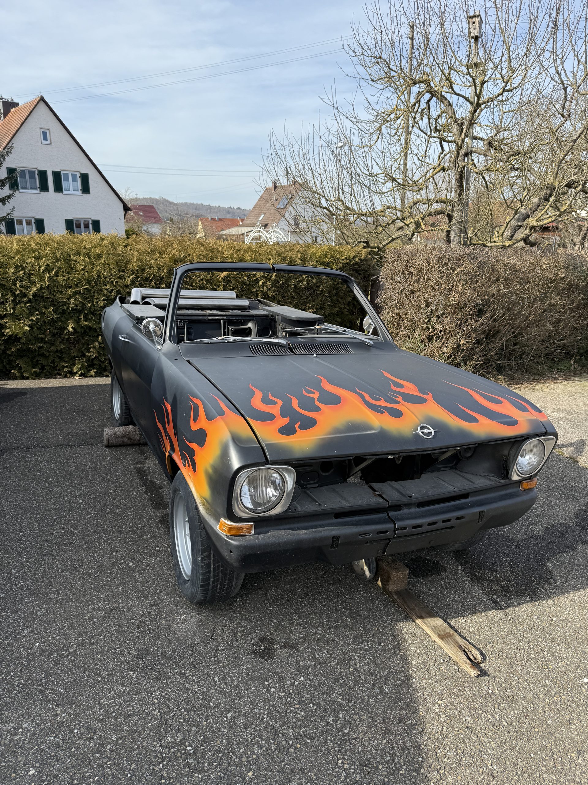 Ich steuere meinen VW-Bus wieder zurück in Richtung Nördlingen. In Kurven windet sich die Straße hinunter in die Senke des Ries. Ein paar Kilometer bergab bin ich in Mönchsdeggingen was mich aus der aufkeimenden Lethargie reißt. Das Kloster kommt in Sicht und weiter unten am Straßenrand erstreckt sich eine Restaurierungswerkstatt mit einem völlig erodieren uralten Bus einem ausgeschlachteten Opel Kadett mit Flammen an den Kotflügeln. Im trüben Schaufenster sehe ich, staune ich mit begeisterten Augen auf ein Indian-Motorrad, der Motor ist noch nicht eingebaut, das Teil ist eine absolute Schönheit.