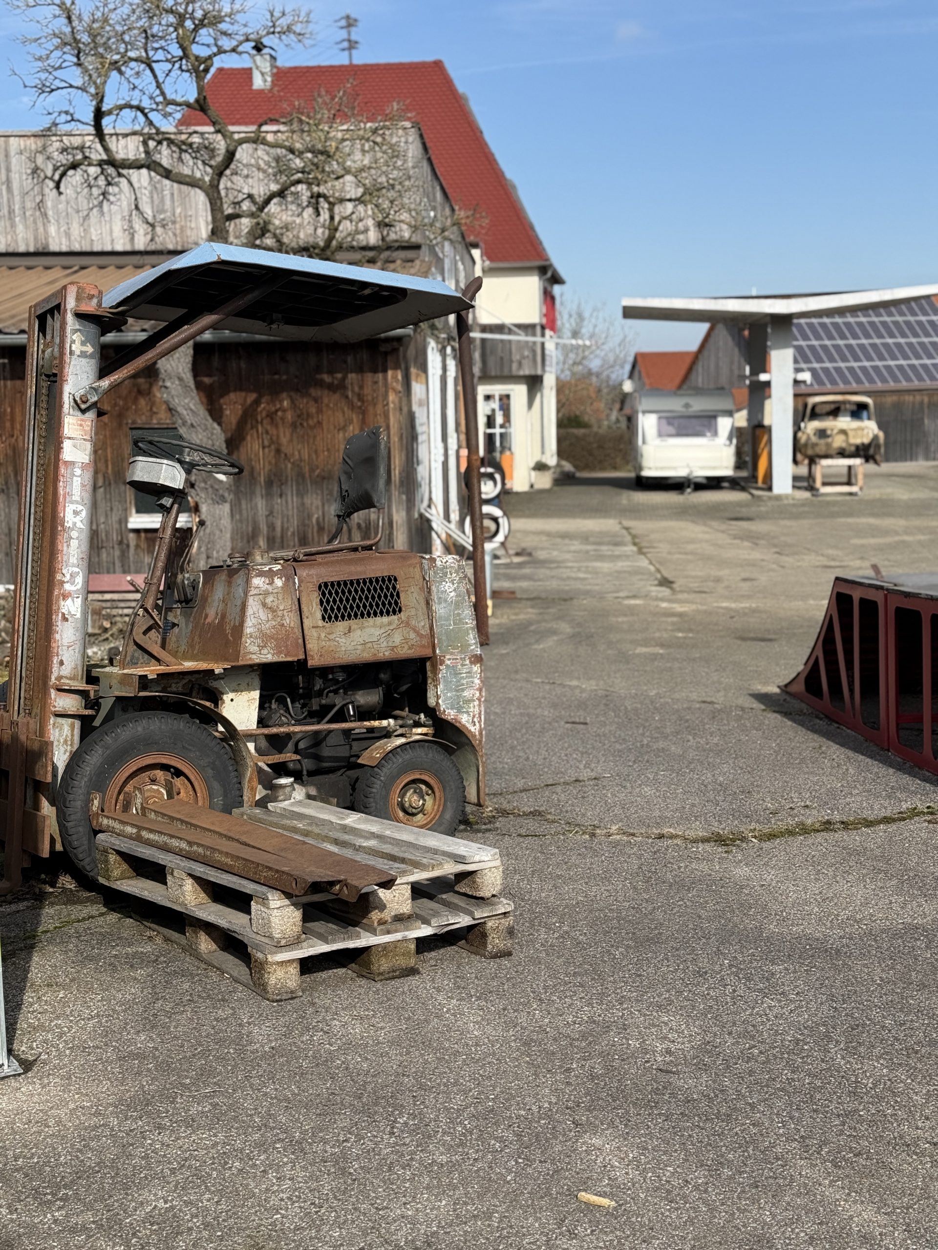 Wäre ich Geologe könnte ich jetzt noch stundenlang weiterdozieren, aber wir wollen ja nach Magerbein und fahren südlich von Nördlingen den Kraterrand hoch, sind dann letztlich ganz oben. Ich stelle fest, dieses Magerbein ist schön, alte Bausubstanz hat es kaum und eine Burg schon gar nicht. Der Adelsherr “Ott Büffel von Magerbein“ erbaute sie Burg 1366, schwächelte frühzeitig und nach seinem Tod wurde die Burg verkauft. Von dem Anwesen ist heute nichts mehr übrig. Das Angebot für Jugend oder solche die ähnliche Unterhaltung suchen ist in Burg Magerbein gleich null. Ansonsten tippe ich auf sehr brave Einwohner. Alles ist ordentlich, die Gehsteige gefegt und geradezu peinlich schwäbisch. Wohl gemerkt. Wir sind in bayerisch Schwaben nicht im Spätzle-Schwaben.