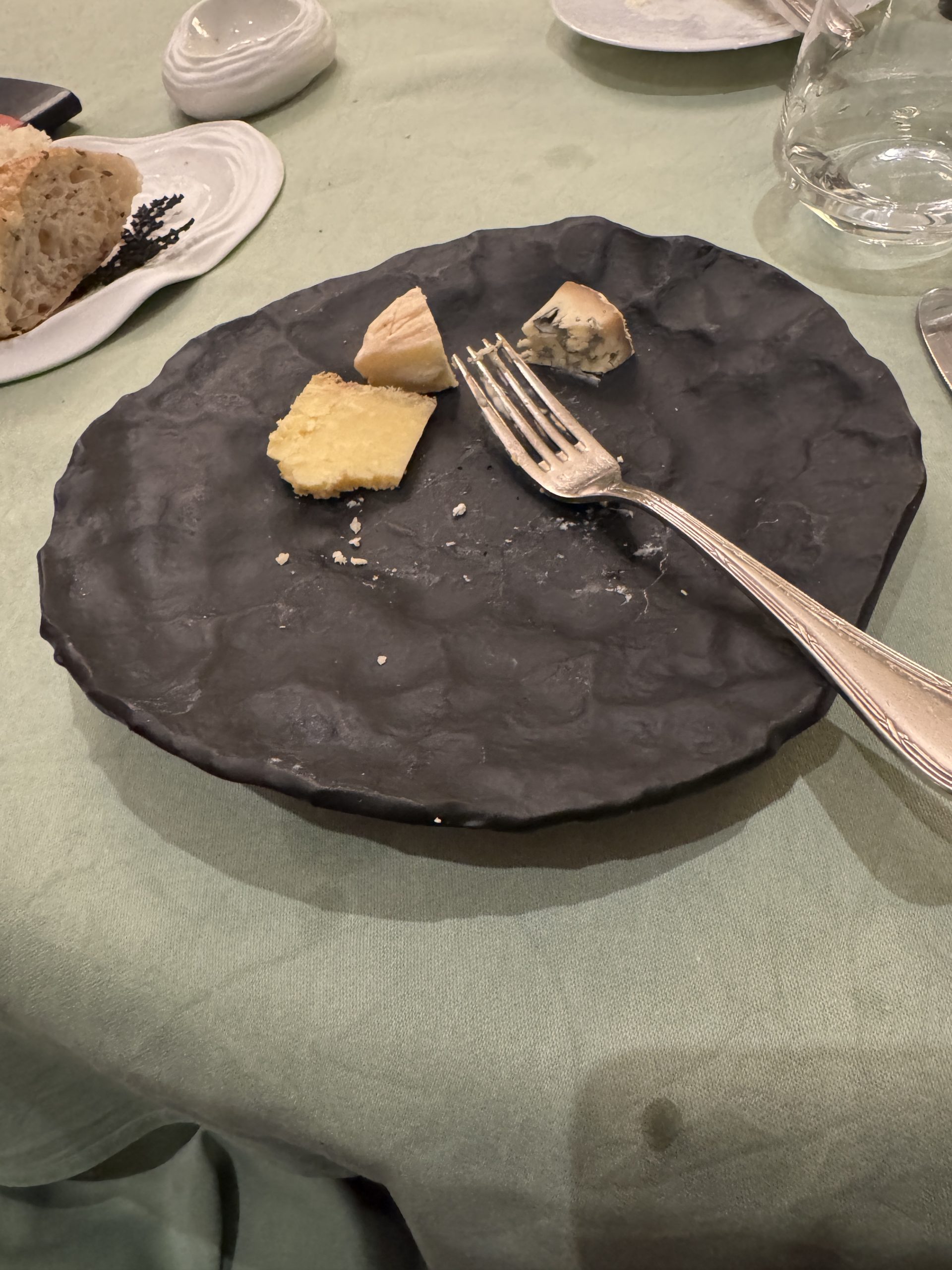 - Käse auf einem saublöden Teller. Auch in Deutschland. Überall Keramik-Hundeschüsseln. Neudeutsch Bowls. Limoges-Porzellan, Tischtücher u.s.w. sind out.